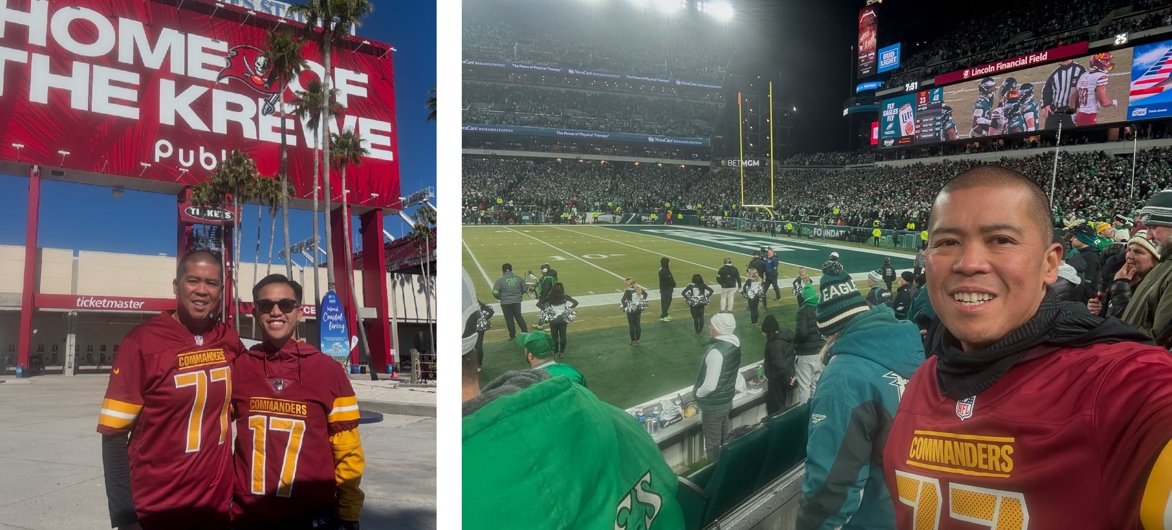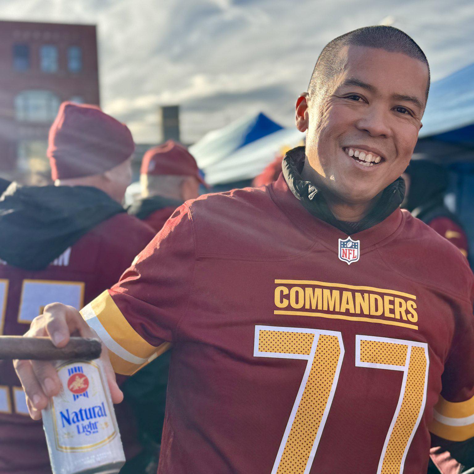 Ted’s roots in Washington football run deep. He didn’t just fall in love with the burgundy and gold, he was born into it. His father, a lifelong fan, put him on the season ticket waitlist when he was a kid. Twenty years later, shortly after his father passed, Ted got the call: a pair of season tickets. He hasn’t missed a home game since. Over the years his voice became familiar not only in the parking lot but also in the media, frequently appearing on FOX 5, debating team news, and showing off his tailgate recipes. His Sunday spreads are so renowned that local media outlets have featured them, with his Asian-style pork loin ribs often earning high praise.